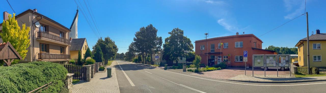 cesta k obecnímu úřadu a kostelu v Sudicích