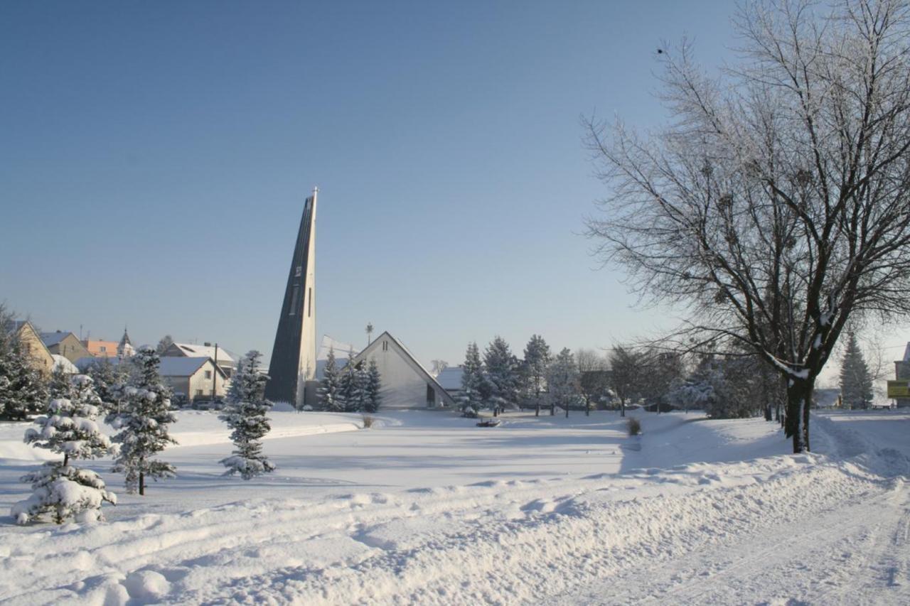 evangelický a pravoslavný kostel v Sudicích v zimě