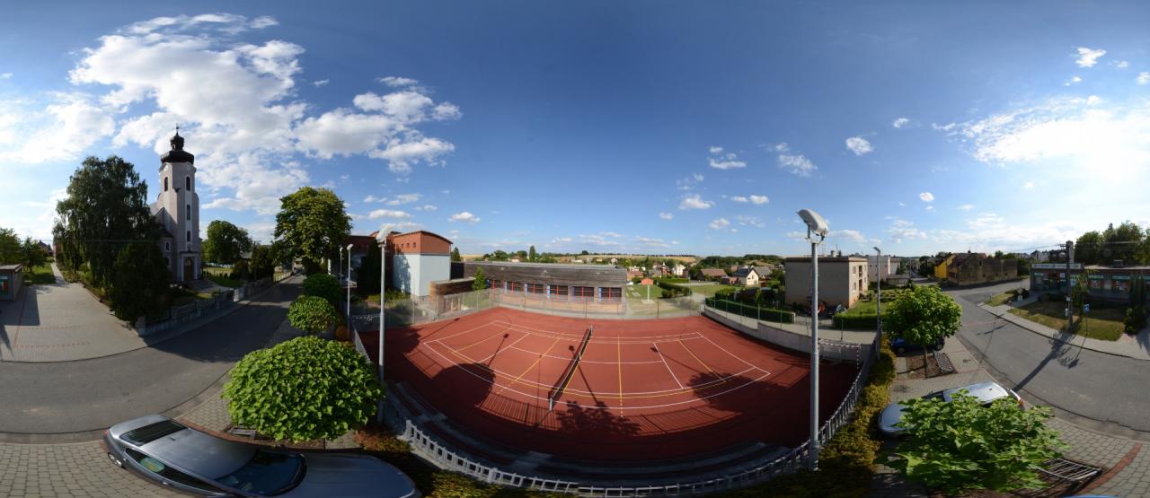 Strahovice areál školy, tenisový kurt (foto z dronu)